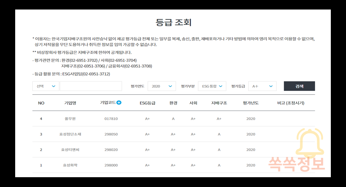 투자를 하시거나, 혹은 어떤 기업들이 ESG경영을 하고 있는지 궁금하시면 들어가서 쉽게 확인해 보시기 바랍니다.